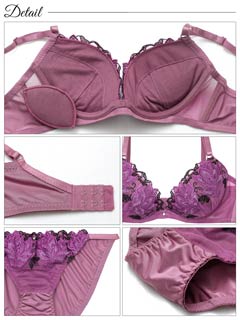 12/2再販!ダスティブルームエンブロイダリー育乳脇高ブラジャー&バック透けフルバックショーツ[激売れ]