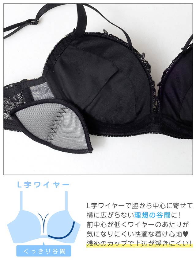 3/4カップ(モールドカップ)/ワイヤー:有(L字)/ホック:バック2段4列