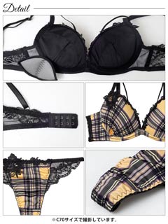 1/21新作!ビターモードチェックブラジャー&バック透けTバックショーツ[激売れ]