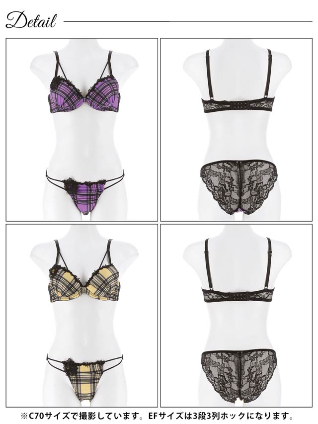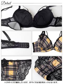 10/15新作!【EFサイズ】ビターモードチェックブラジャー&バック透けフルバックショーツ[大人気]