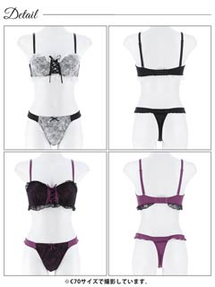 【EFサイズ】ロマンティックビターレースブラジャー&Tバックショーツ[大人気]