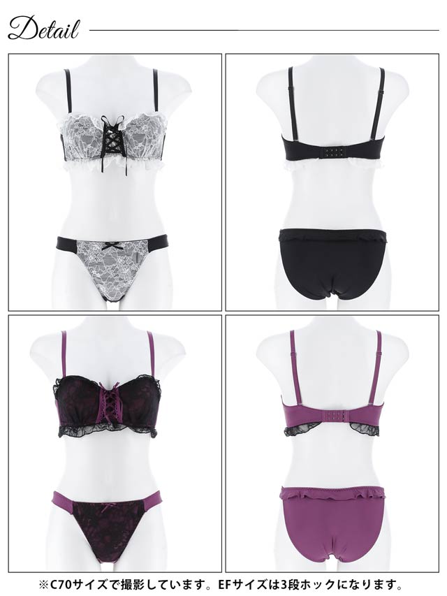 10/1新作!【EFサイズ】[4way]ドーリーレースアップフリルブラジャー&フルバックショーツ[大人気]