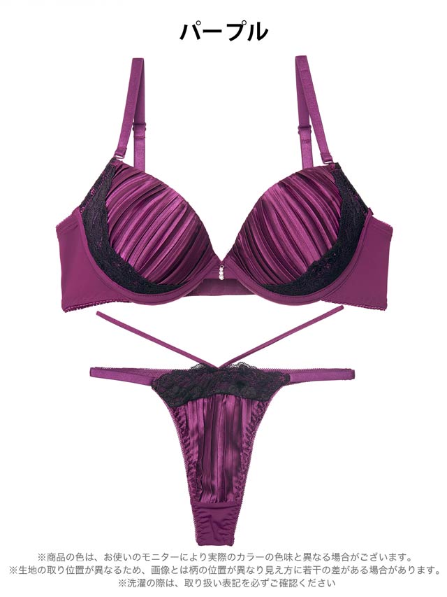 1/19新作!【三上悠亜着用】リッチプリーツサテンブラジャー&Tバックショーツ[激売れ]