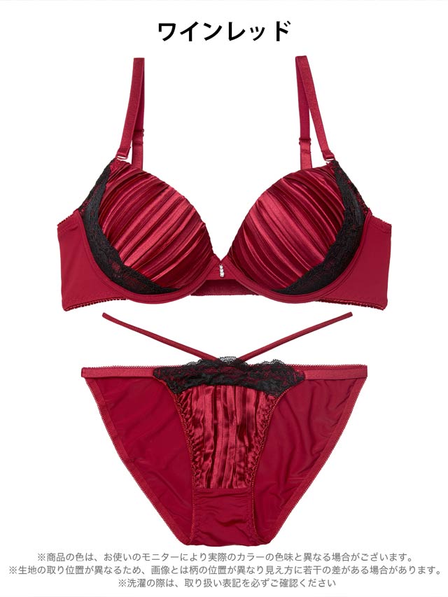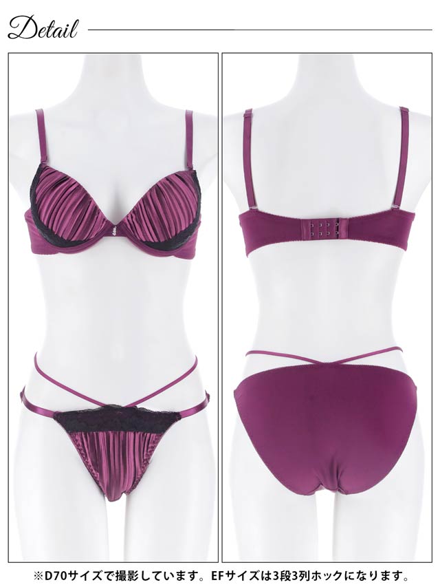 1/19新作!【三上悠亜着用】【EFサイズ】リッチプリーツサテンブラジャー&フルバックショーツ[大人気]
