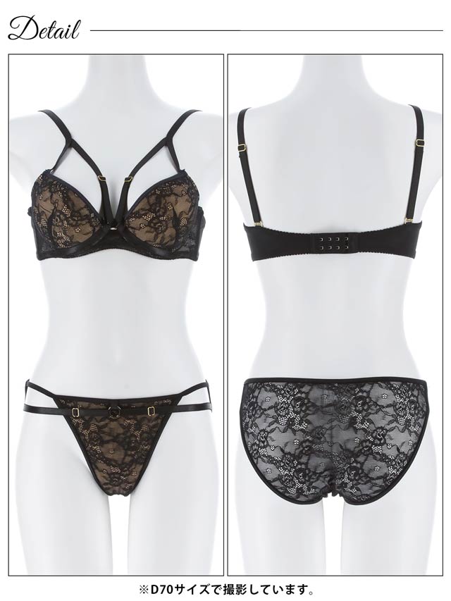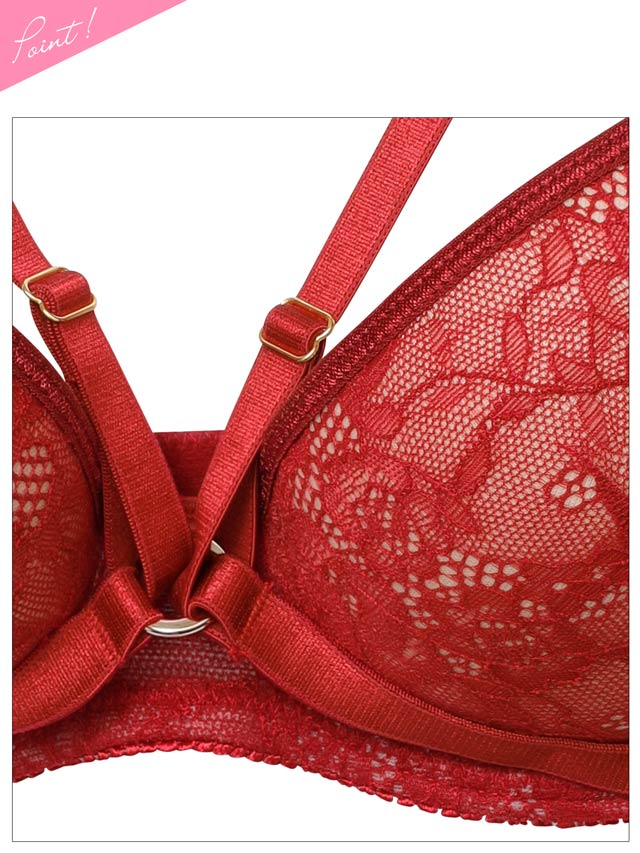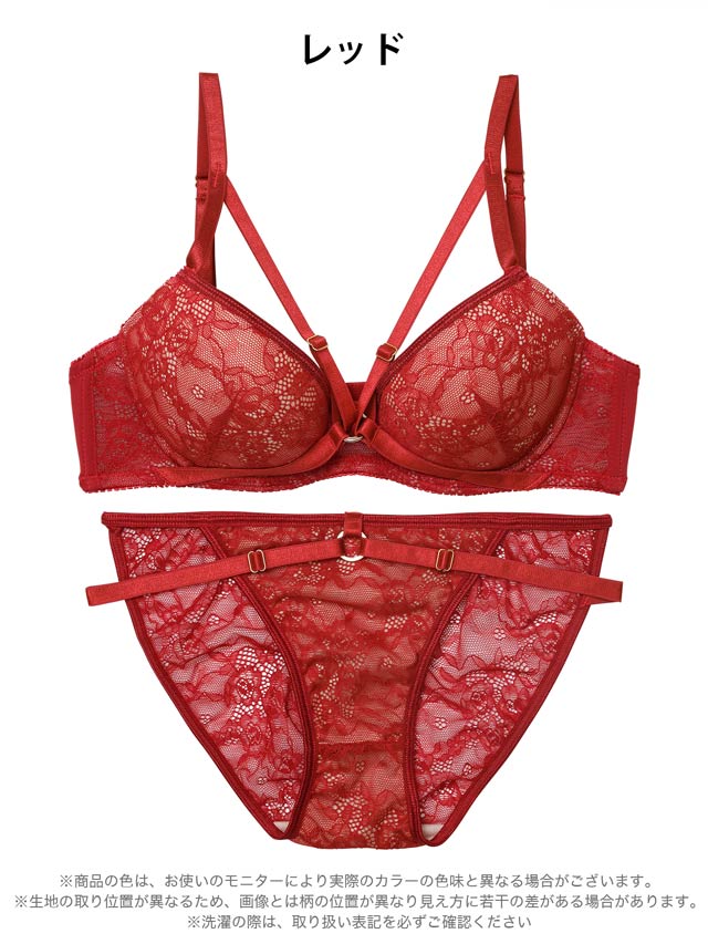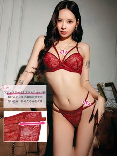 オールレースカットストリング育乳脇高ブラジャー&バック透けフルバックショーツ