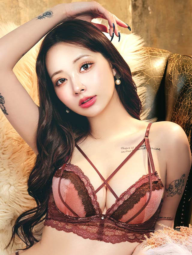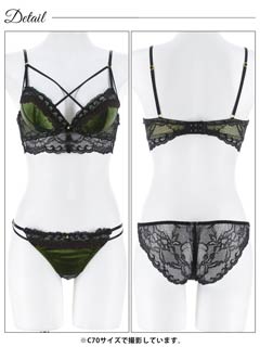 オールレースカットストリング育乳脇高ブラジャー&バック透けフルバックショーツ