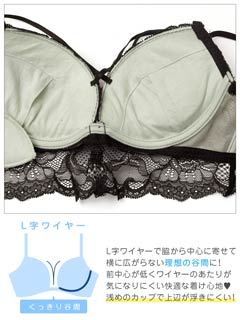ダスティブルームエンブロイダリー育乳脇高ブラジャー&バック透けフルバックショーツ
