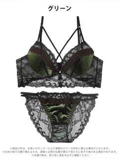 オールレースカットストリング育乳脇高ブラジャー&バック透けフルバックショーツ