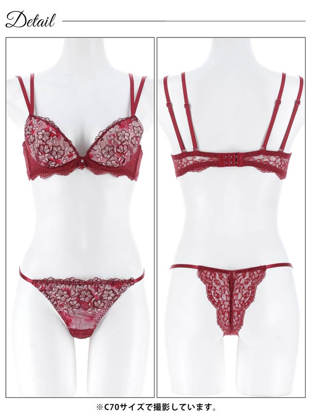 12/17新作!ルミエールディープフラワーブラジャー&バック透けTバックショーツ[激売れ]