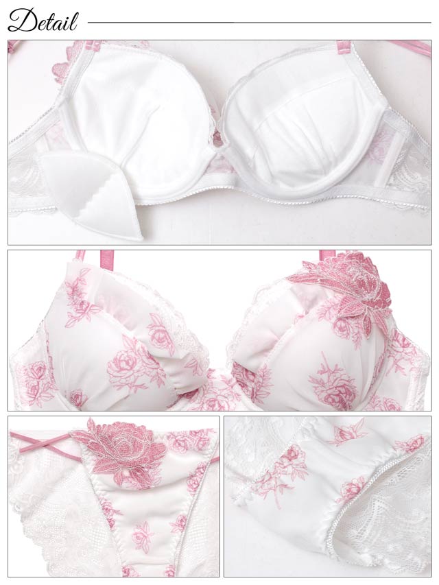ダスティブルームエンブロイダリー育乳脇高ブラジャー&バック透けフルバックショーツ
