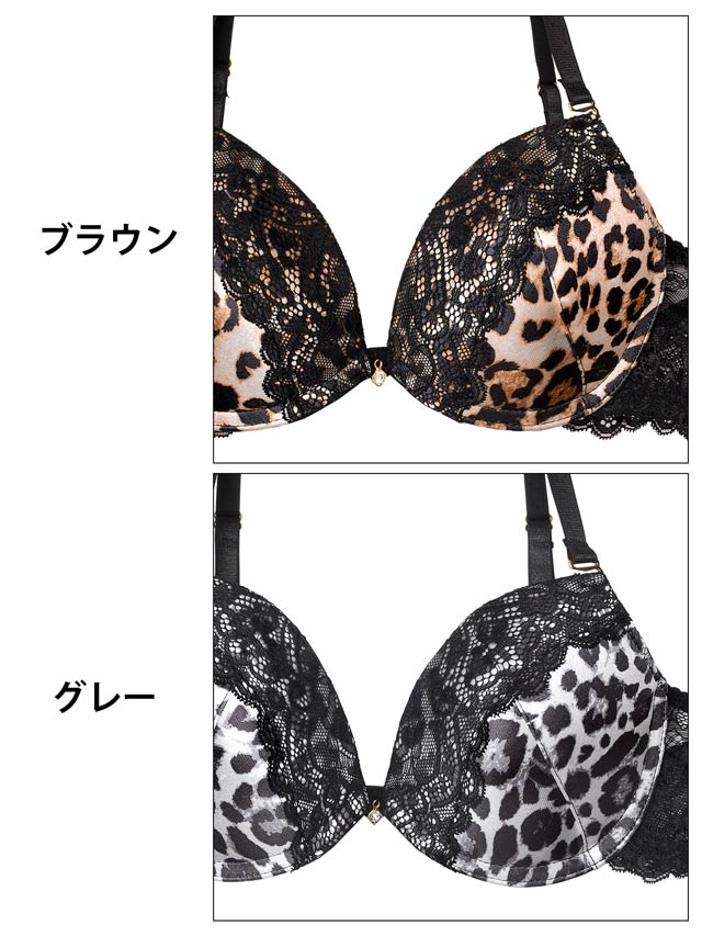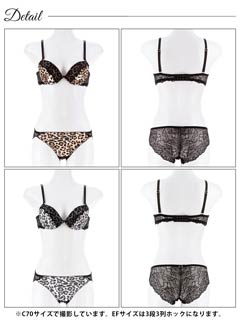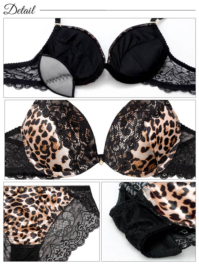 【EFサイズ】サテンレオパードレースブラジャー&バック透けフルバックショーツ[大人気]