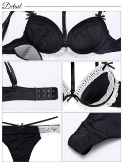 オールレースカットストリング育乳脇高ブラジャー&バック透けフルバックショーツ