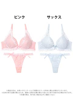 ダスティブルームエンブロイダリー育乳脇高ブラジャー&バック透けフルバックショーツ