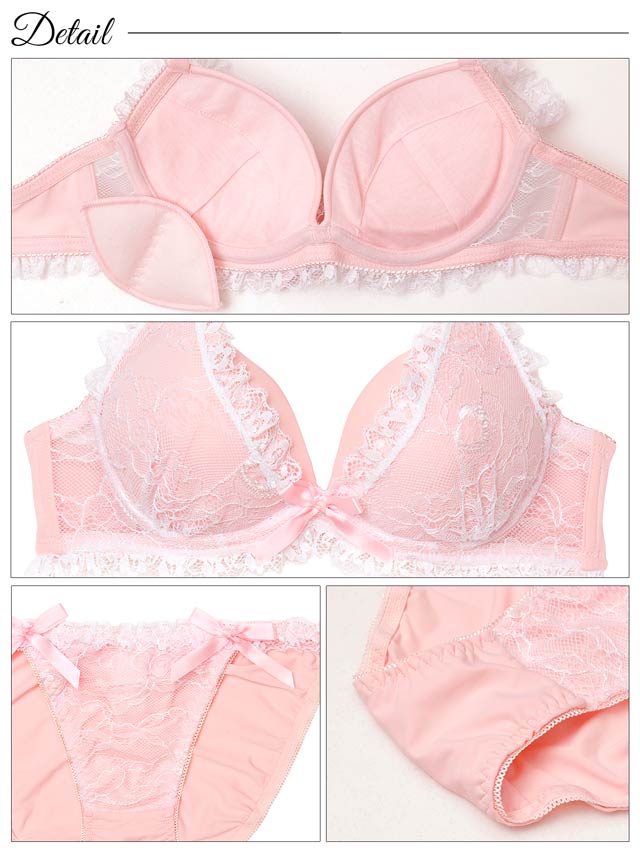 10/18再販!【EFサイズ】ラブリーパステルフリルブラジャー&フルバックショーツ[大人気]