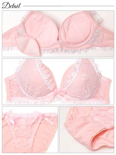 ダスティブルームエンブロイダリー育乳脇高ブラジャー&バック透けフルバックショーツ