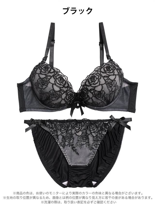 12/2再販!【三上悠亜着用】エレガンスフラワー刺繍ブラジャー&フルバックショーツ[激売れ]