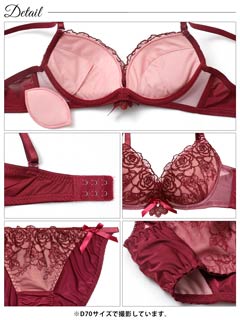 11/8再販!ロマンティックベルローズ育乳脇高ブラジャー&バック透けフルバックショーツ[激売れ]