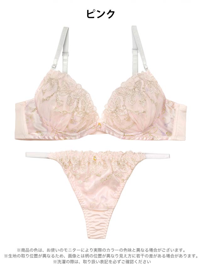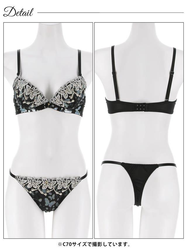 1/14新作!フェミニンバタフライエンブロイダリーブラジャー&Tバックショーツ[激売れ]