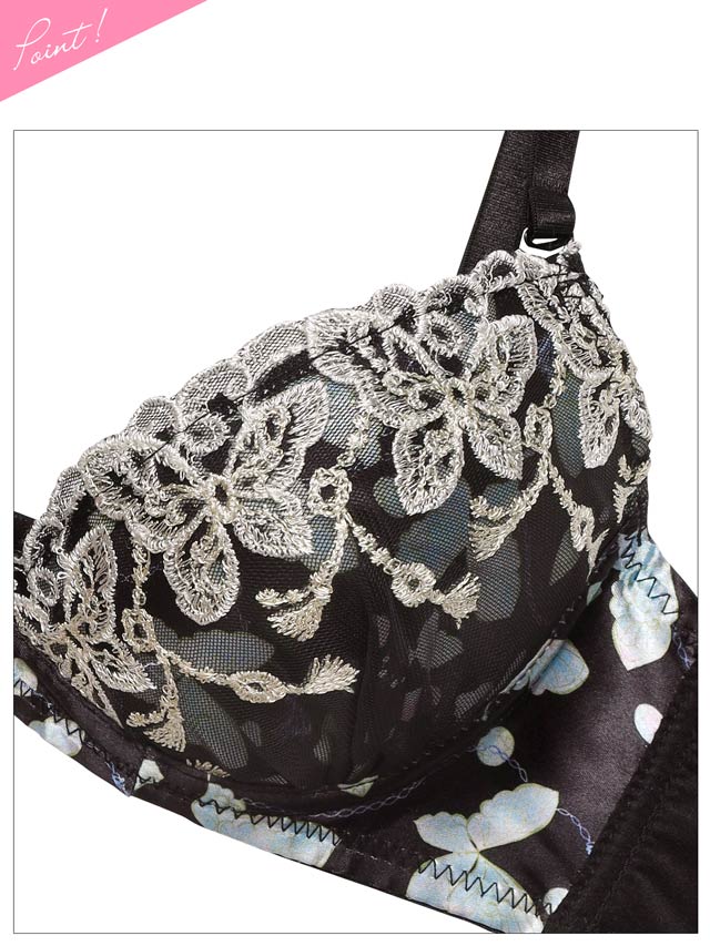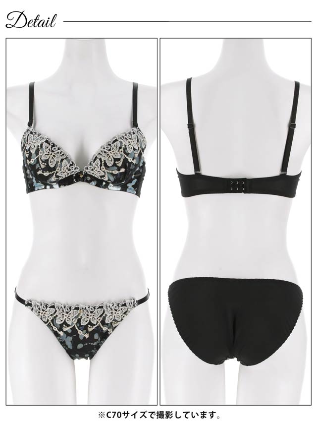 1/14新作!【EFサイズ】フェミニンバタフライエンブロイダリーブラジャー&フルバックショーツ[大人気]
