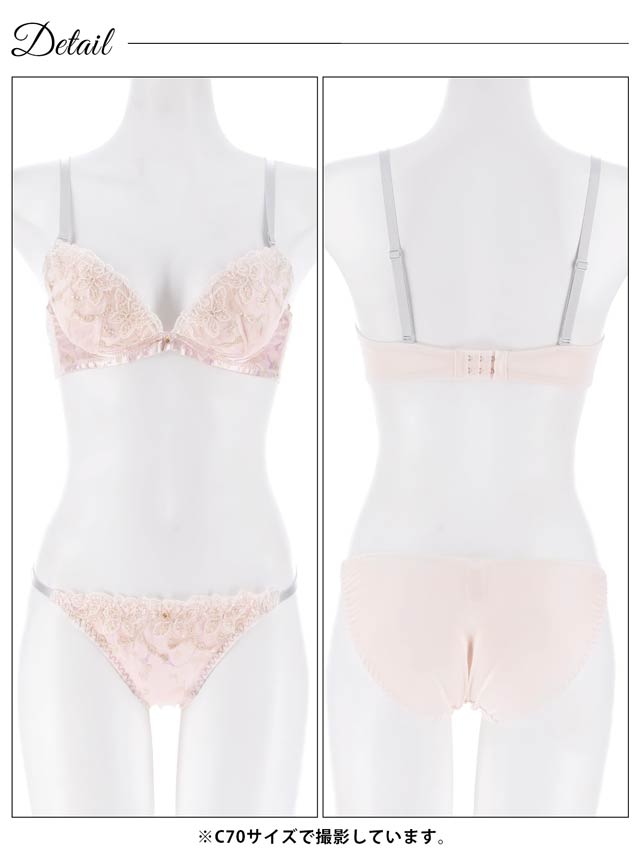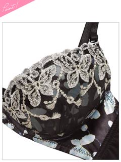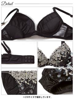 ダスティブルームエンブロイダリー育乳脇高ブラジャー&バック透けフルバックショーツ