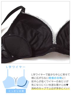 ブロッサムギャザーレース育乳脇高ブラジャー&バック透けフルバックショーツ
