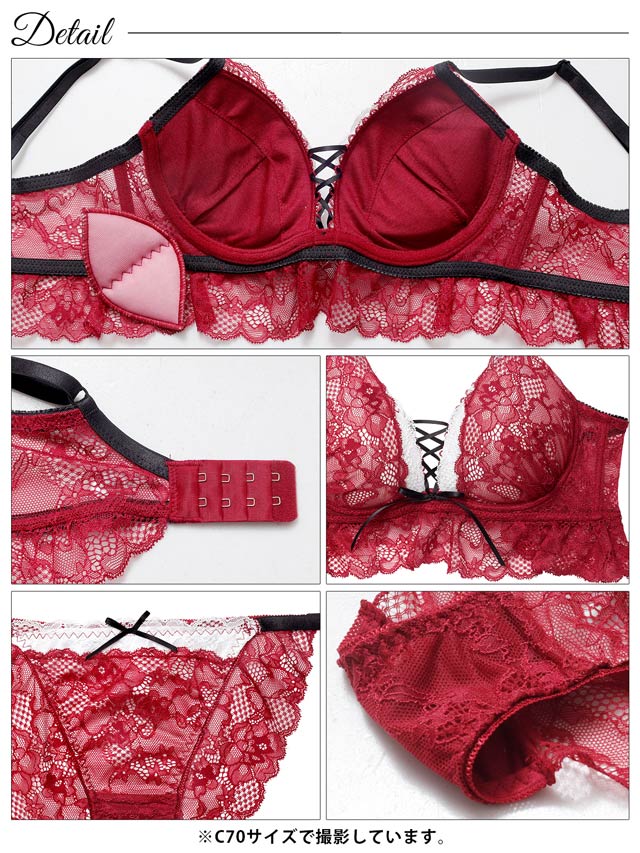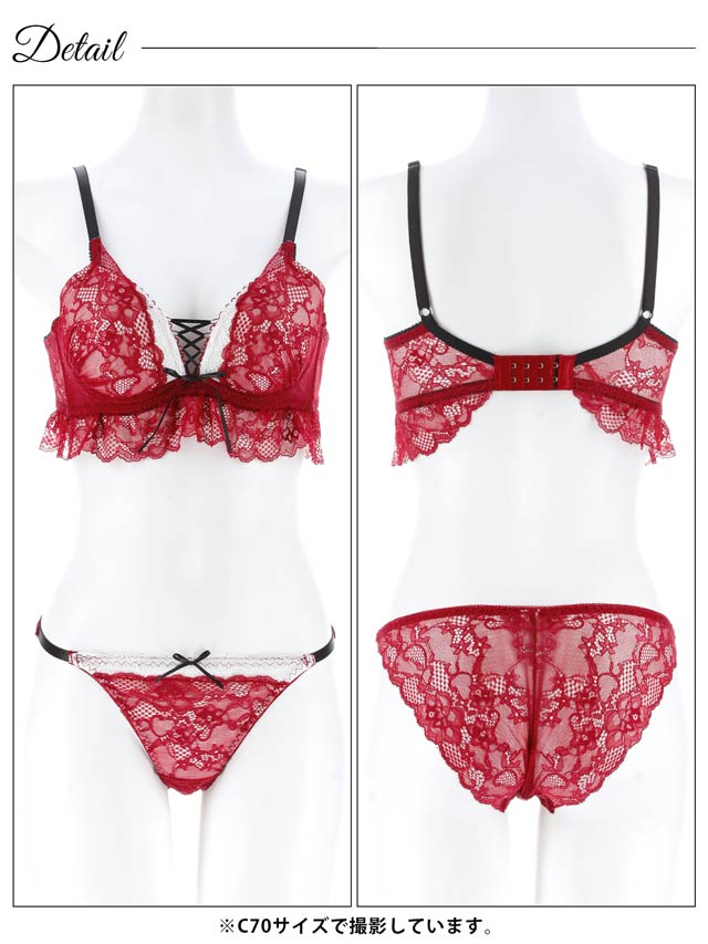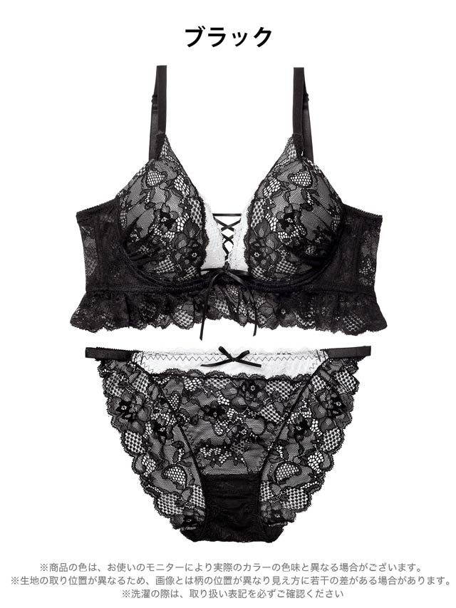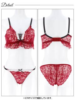 11/17新作!ディープリボンレースアップ育乳脇高ブラジャー&バック透けフルバックショーツ[激売れ]