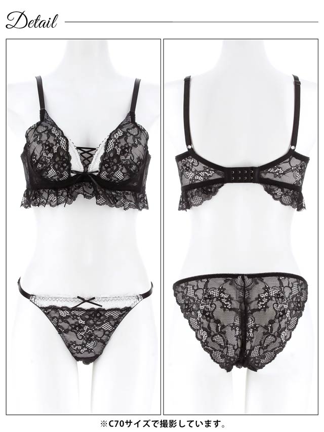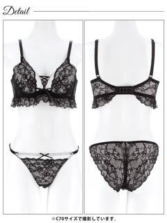 オールレースカットストリング育乳脇高ブラジャー&バック透けフルバックショーツ