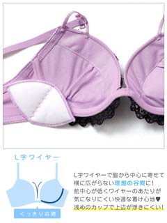 ダスティブルームエンブロイダリー育乳脇高ブラジャー&バック透けフルバックショーツ