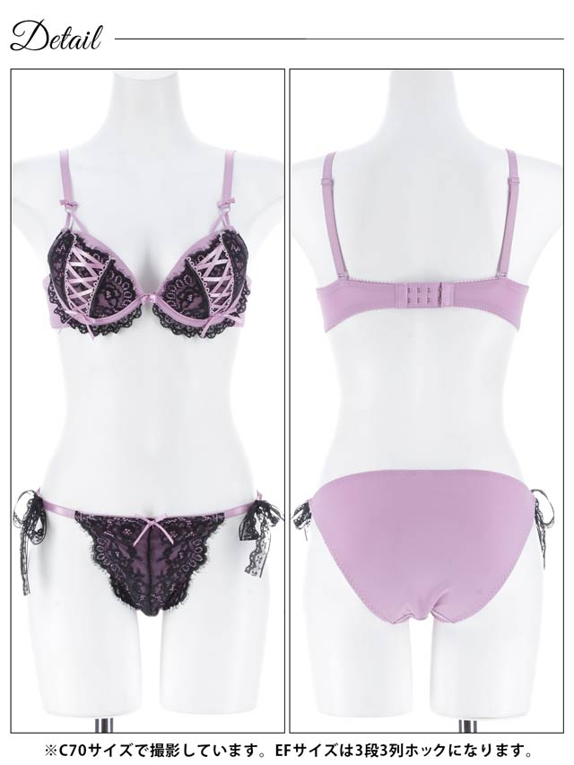 11/12新作!【EFサイズ】メルトリボンレースアップブラジャー&フルバックショーツ[大人気]