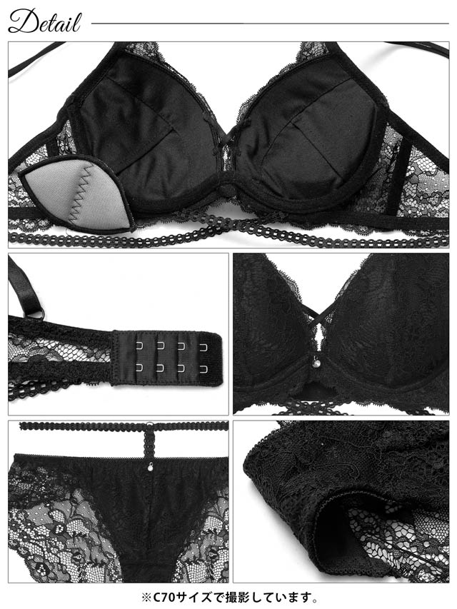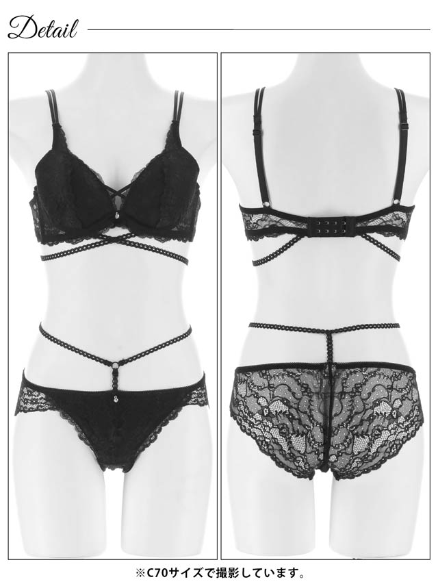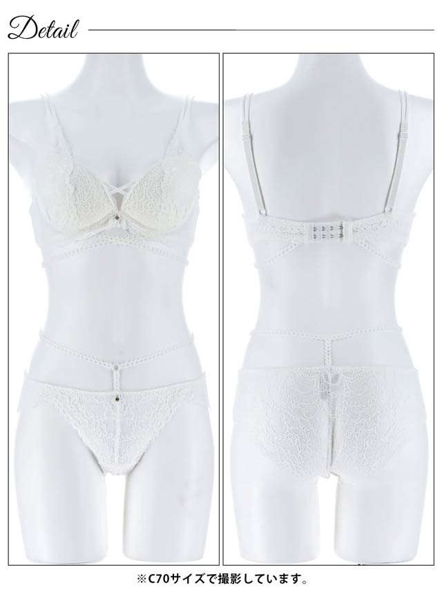 オールレースカットストリング育乳脇高ブラジャー&バック透けフルバックショーツ