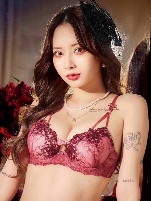 2/5再販!【三上悠亜着用】フローラルミューズ育乳脇高ブラジャー&バック透けフルバックショーツ[激売れ]