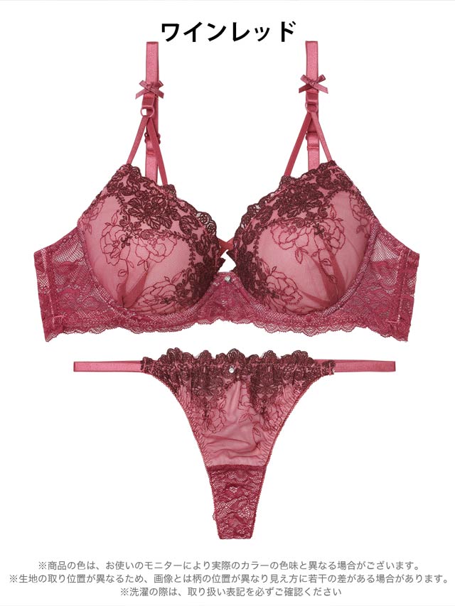2/3再販!ロマンティックベルローズ育乳脇高ブラジャー&バック透けフルバックショーツ[激売れ]