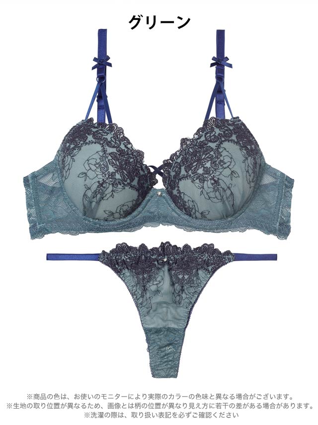 フローラルミューズ育乳脇高ブラジャー&バック透けフルバックショーツ