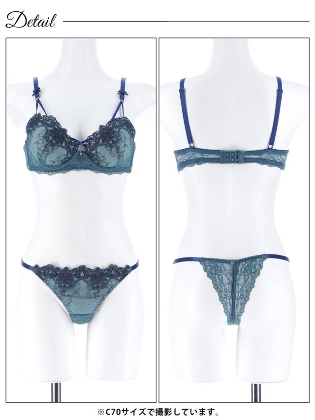 オールレースカットストリング育乳脇高ブラジャー&バック透けフルバックショーツ