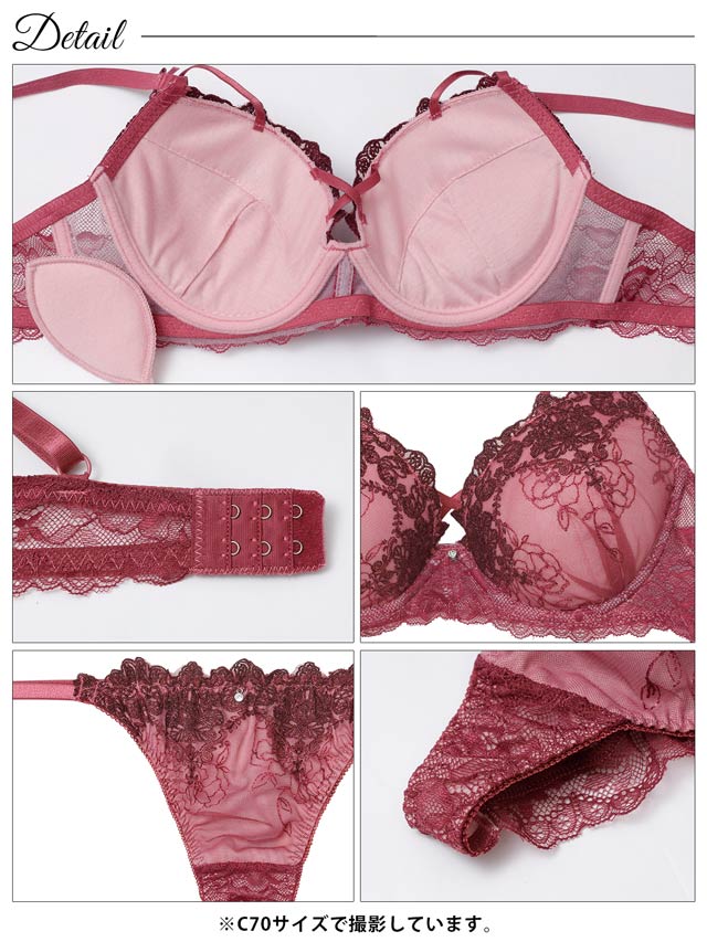ロマンティックベルローズ育乳脇高ブラジャー&バック透けフルバックショーツ