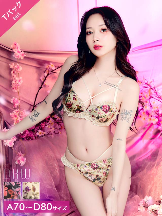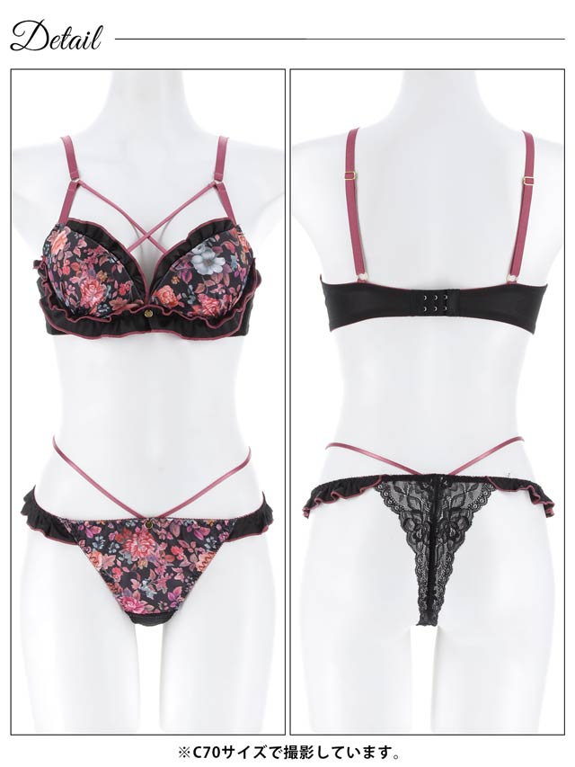 12/29新作!グロリアスブルームフリルブラジャー&バック透けTバックショーツ[激売れ]