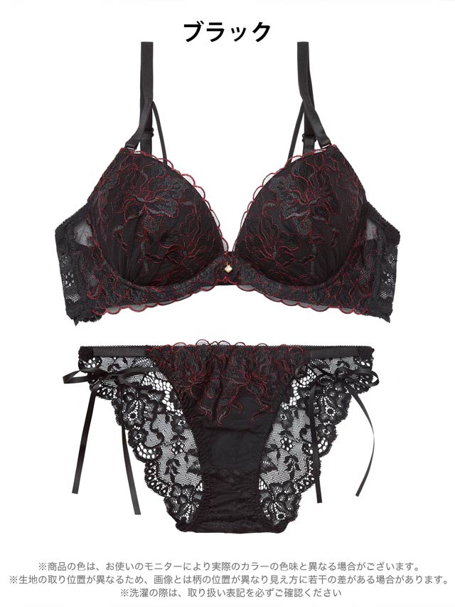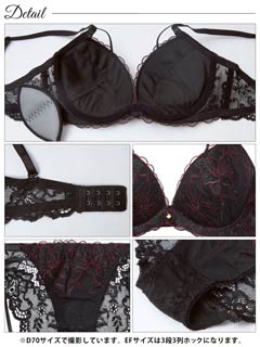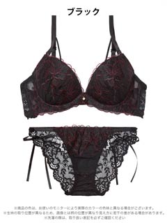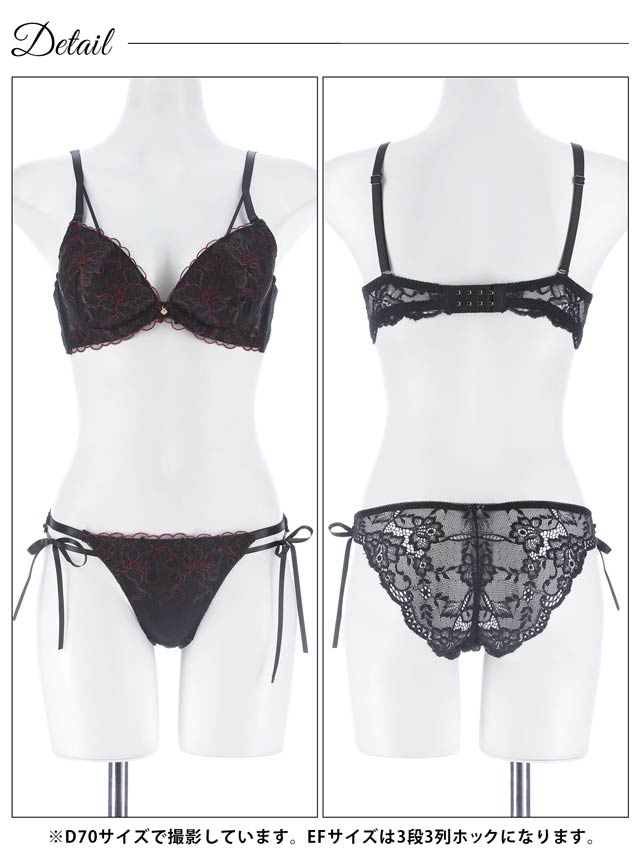 1/21新作!【かとゆり着用】【EFサイズ】レディブーケエンブロイダリーブラジャー&サイド紐バック透けフルバックショーツ[大人気]