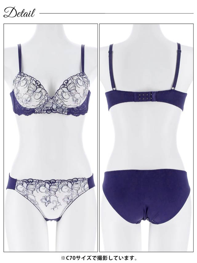 フローラルミューズ育乳脇高ブラジャー&バック透けフルバックショーツ