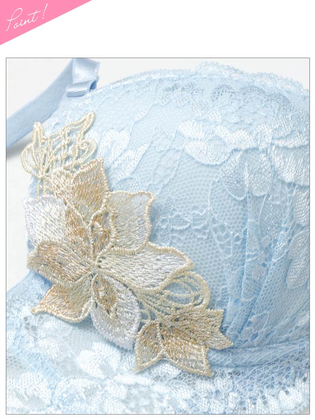 ゴージャスフラワーパール育乳脇高ブラジャー&フルバックショーツ