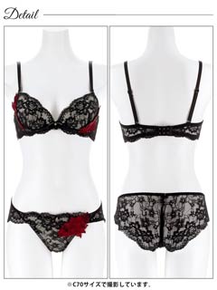 3/12再販!ロマンティックベルローズ育乳脇高ブラジャー&バック透けフルバックショーツ[激売れ]