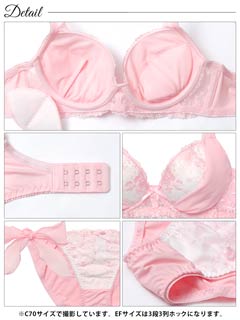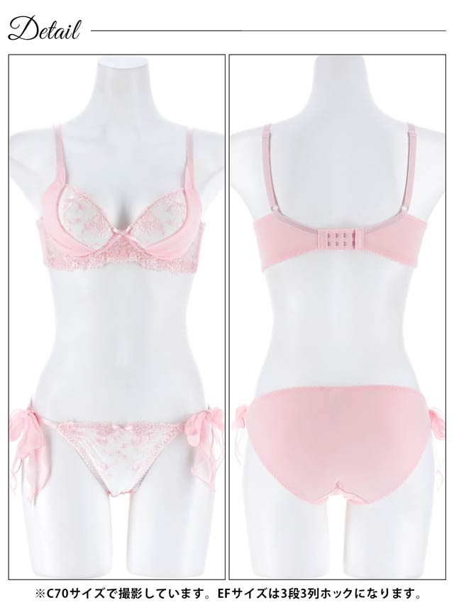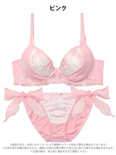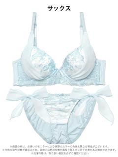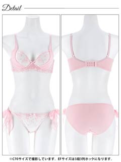 1/23新作!【EFサイズ】ミルキーブロッサムリボン育乳脇高ブラジャー&サイド紐フルバックショーツ[大人気]