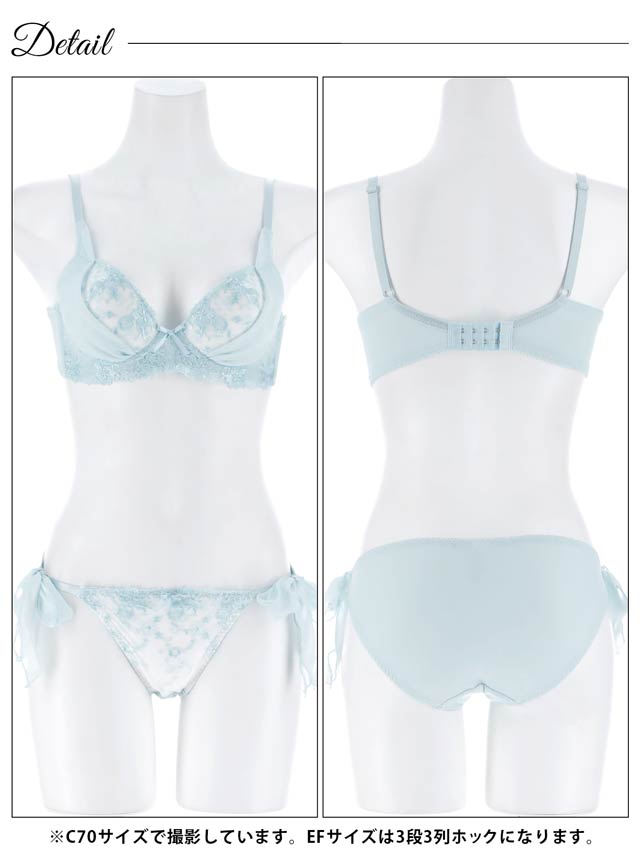 ダスティブルームエンブロイダリー育乳脇高ブラジャー&バック透けフルバックショーツ