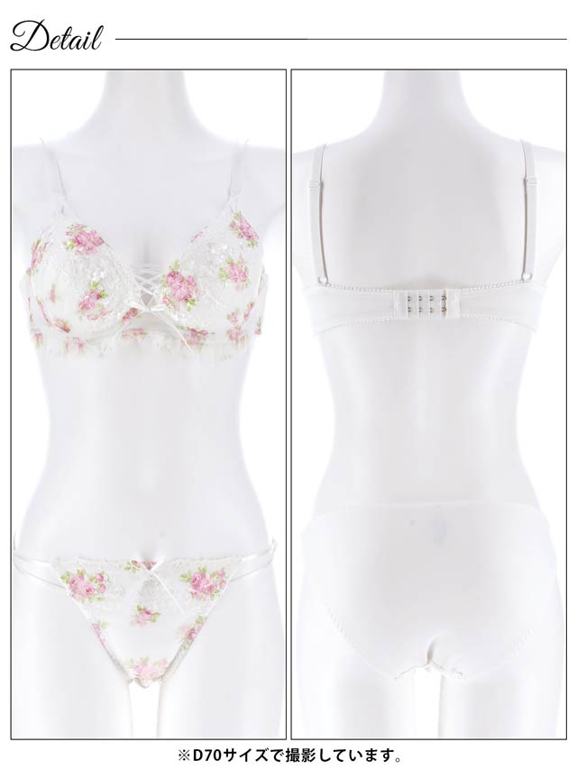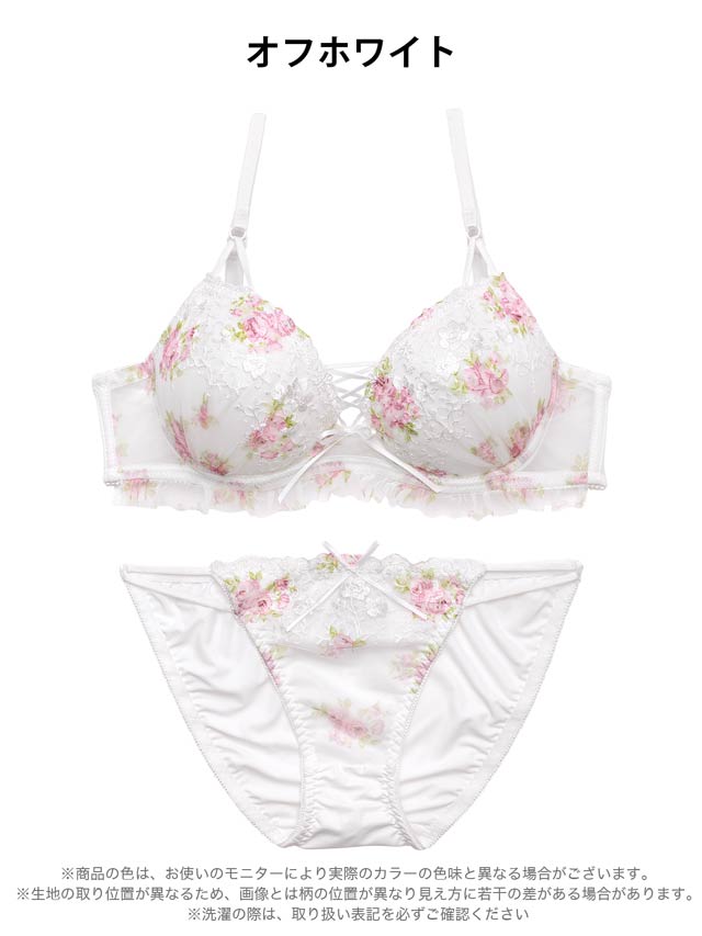 4/10新作!【かとゆり着用】ガーリーフラワーレースアップブラジャー&フルバックショーツ[激売れ]
