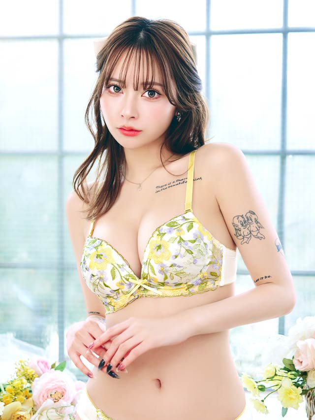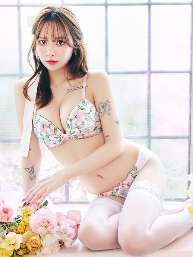 4/20新作!【三上悠亜着用】ミステリアスローズ育乳脇高ブラジャー&バック透けフルバックショーツ[激売れ]
