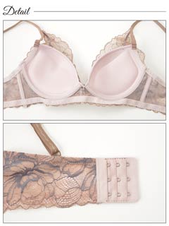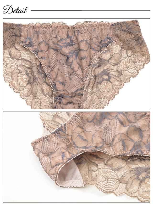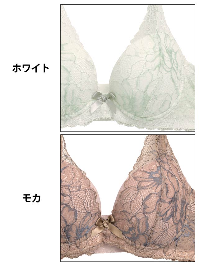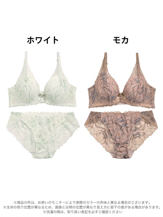 エレガントフローラルレース育乳脇高ブラジャー&バック透けフルバックショーツ[プチプラ]