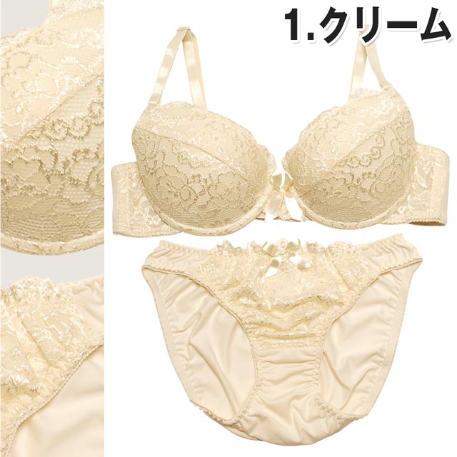 シンプルなのにゴージャスなレースブラに新作が登場!!カップ一面に贅沢にレースを使用☆彡凸凹が少ないレースだから、お洋服にも響きにくい♪ふかふかパッドで胸を包み込み、まぁるい美形バストが完成!!胸元にはCUTEなサテンリボンがついてるよ★★ショーツも同じく贅沢レースを使用して、ヒップは肌触りが気持ち良いストレッチ素材♪可愛さも色気も詰め込んだレディライクなブラショー☆彡是非試してみてね!!