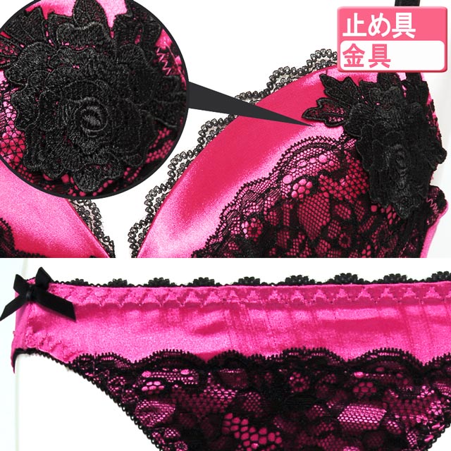 あの大人気ブラがnewバージョンで帰ってキタSEXY鉄板のサテン×レースランジェ★今回はバラモチーフのレース刺繍モチーフがポイントです♪よりSEXYなデザインになりました!!内蔵パッドとレモンパッドでよりグラマーなバストになれます☆970円には見えない高品質ブラなのでGETしなくちゃ損だよ~♪