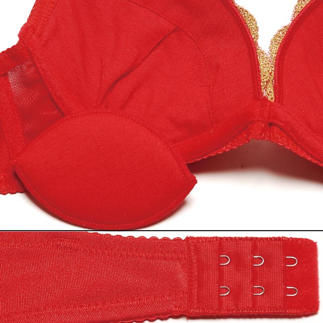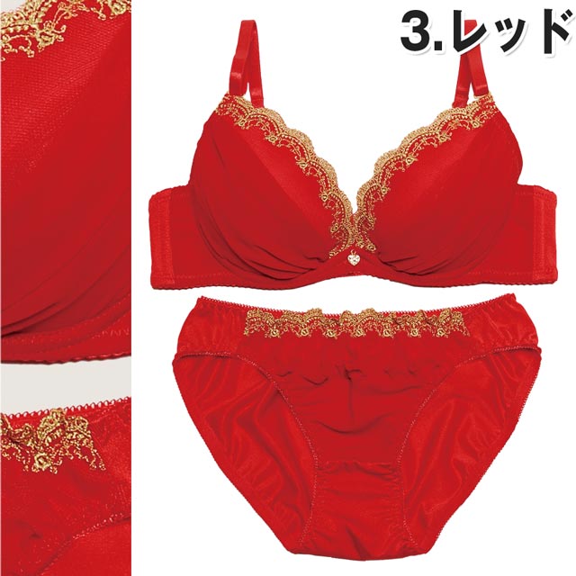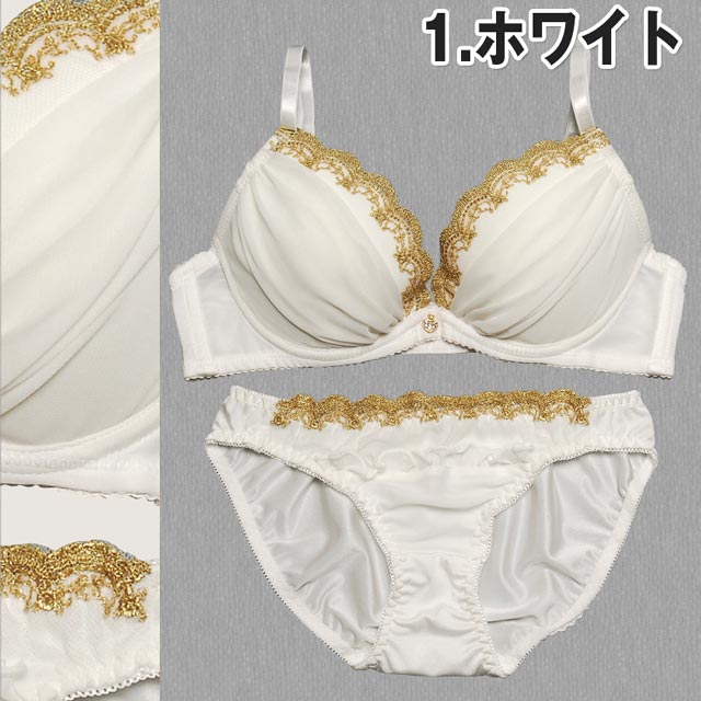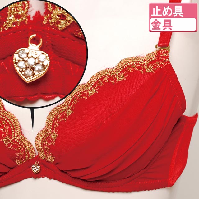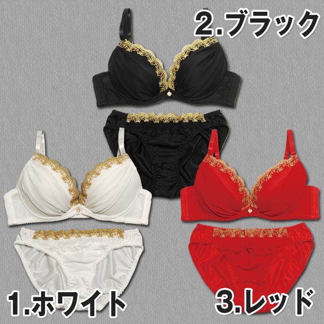 絶対に忘れられない女になるッ!!最強なインパクトブラが登場♪男性支持率100%のシフォンブラに煌びやかなGold刺繍レースをのせました☆+゜・。970円とは思えない程の高級感(・∀・)ノカップ全体やショーツにはチュールレースをのせ女のコらしいデザインに♪さらにセンターにはハート型のキラキラ.。:+* ラインストーン付き(*´∀`*)どこまでも可愛さとSexyさに拘ったランジェリーです( n´∀`)n゜*:.。.:*