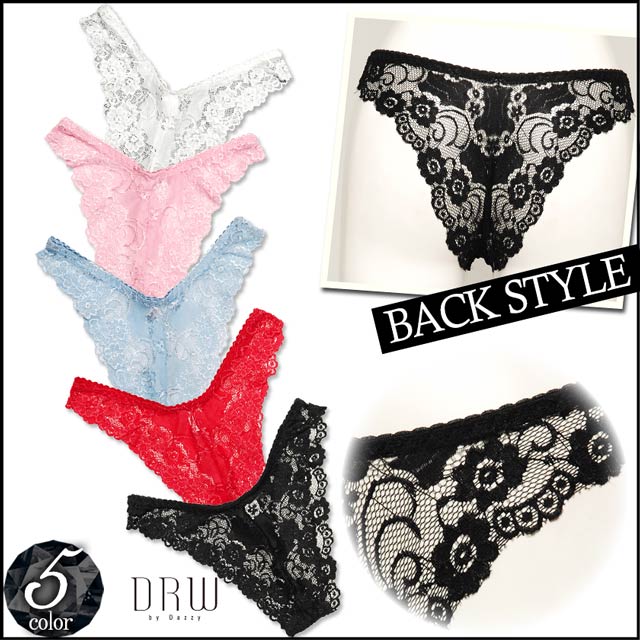 オールレースカットストリング育乳脇高ブラジャー&バック透けフルバックショーツ