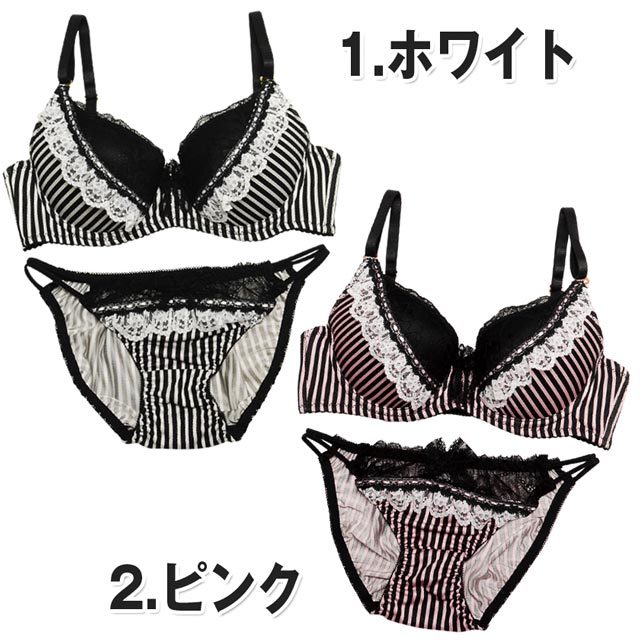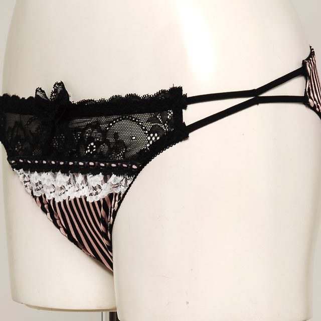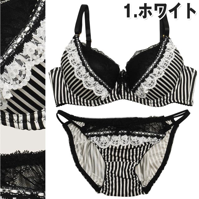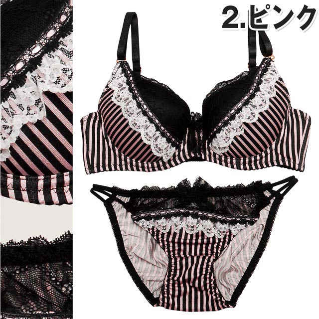 清潔感ある細めストライプ柄と、たっぷり贅沢に使ったレースのエロさが混在する究極の小悪魔ランジェΨ(・ω・)Ψブラは黒レースとの境目を編み込みリボンと白のフリルレースでデコレーション♪ふっかふかの内臓&付属Wパッドで激的に盛れる☆.。.:*・゜☆ショーツは黒レース部分から素肌が透けて超エロい!!!サイド紐は人気のクロスラインでスッキリSEXY仕上げ♪